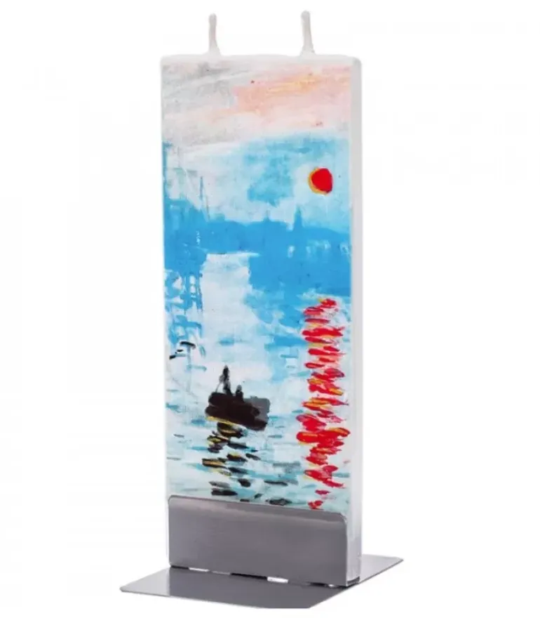 Bougie Déco Double Meche, Motif Monnet « Soleil Levant Sur La Seine ».