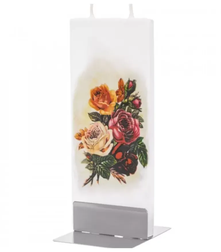 Bougie Décorative Double Meche, Motif Bouquet De Roses.