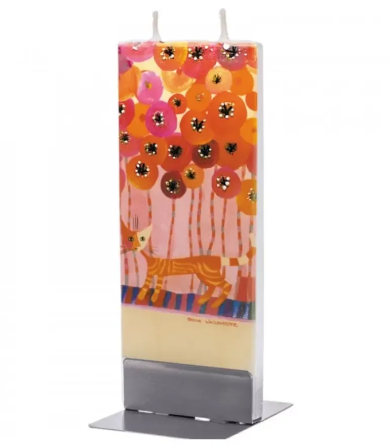 Bougie Design, Motif Peintre Rosina Wachtmeister, Chat Dans Les Fleurs.