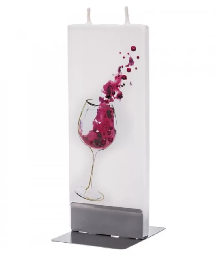 Bougie Décorative Double Meche, Motif Verre De Vin Rouge.
