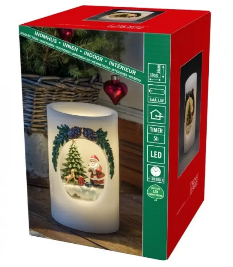Bougie A Led Aspect Cire Veritable Père Noël Avec Chien