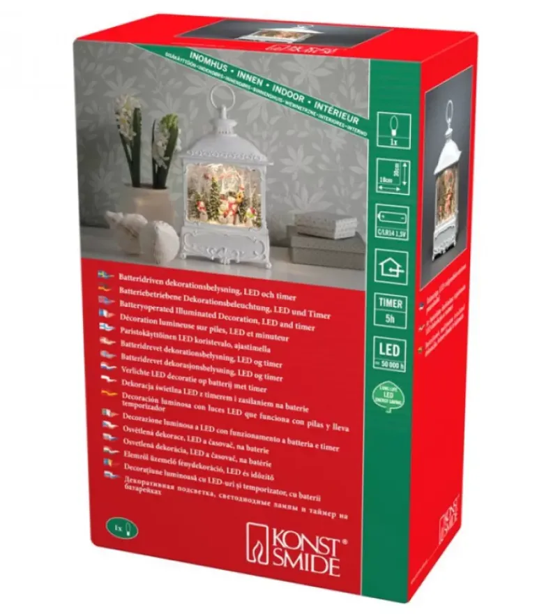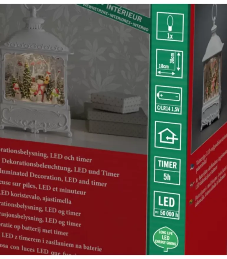 Lanterne De Noël Blanche, 4 Bonshommes De Neige Avec Oiseaux