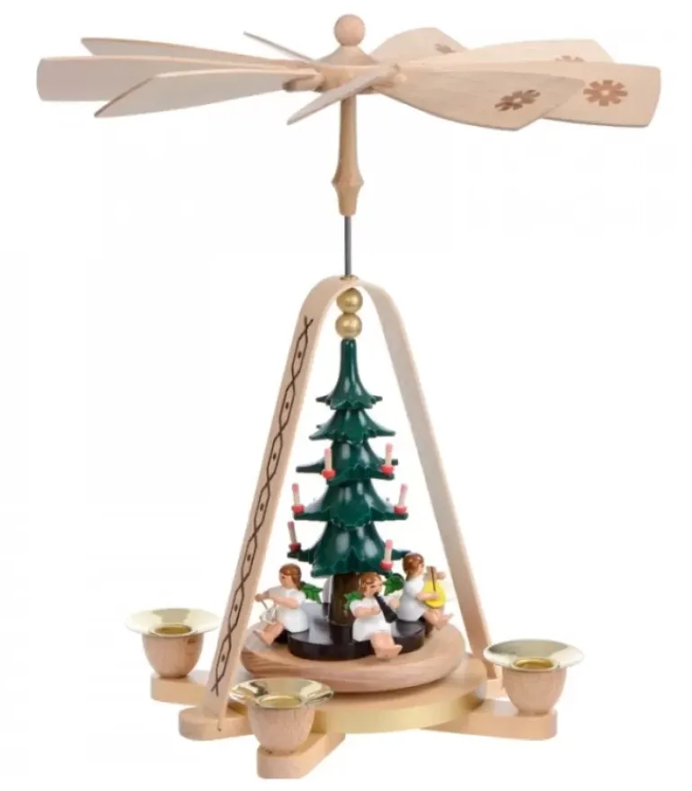 Pyramide A Bougie Avec Anges Autour D’Un Sapin De Noël.