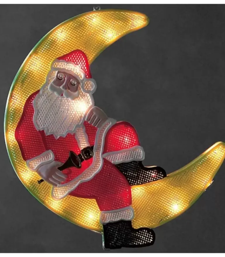 Image De Fenetre A Led, Père Noël Lumineux Assis Sur La Lune Qui Dort.