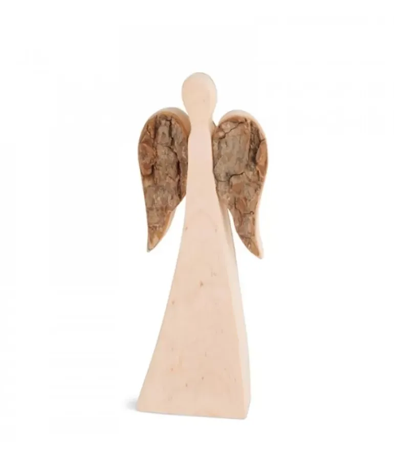 Ange De Noël Double Face En Ecorce Et Bois Poli.