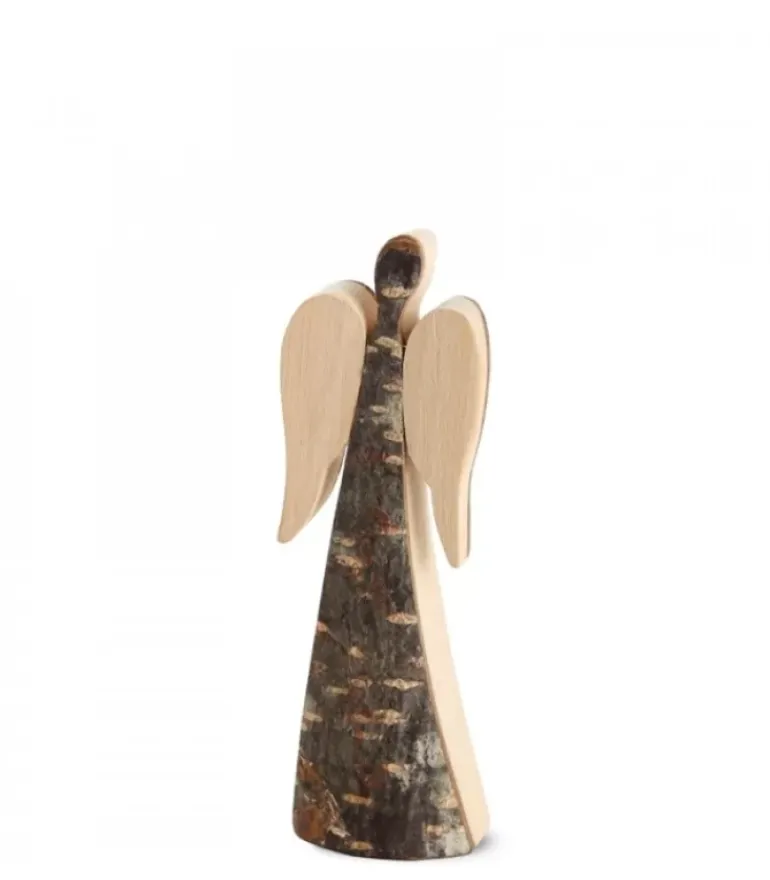 Ange De Noël Double Face En Ecorce Et Bois Poli.