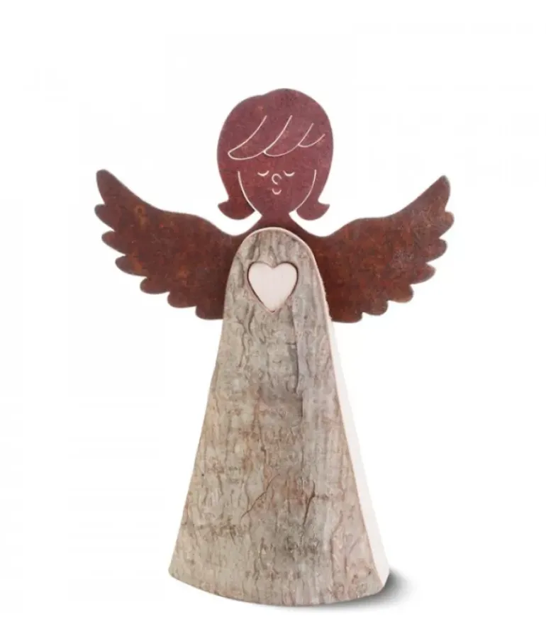 Ange De Noël En Ecorce Avec Ailes En Metal Oxyde.