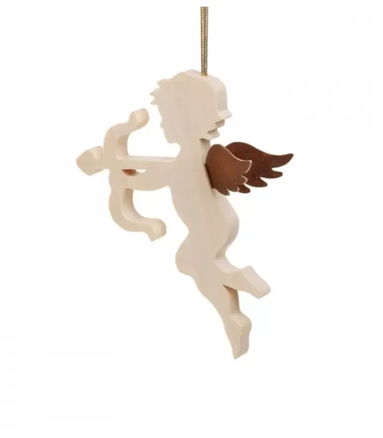 Petit Ange Décoratif A Suspendre, En Bois D’Erable, Avec Un Arc Et Une Fleche.