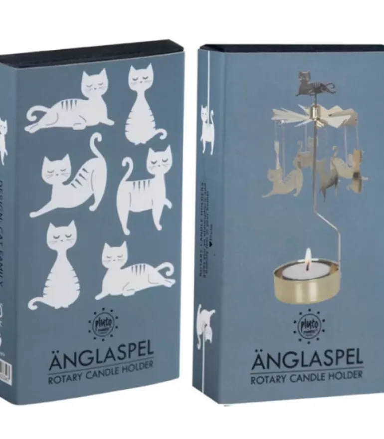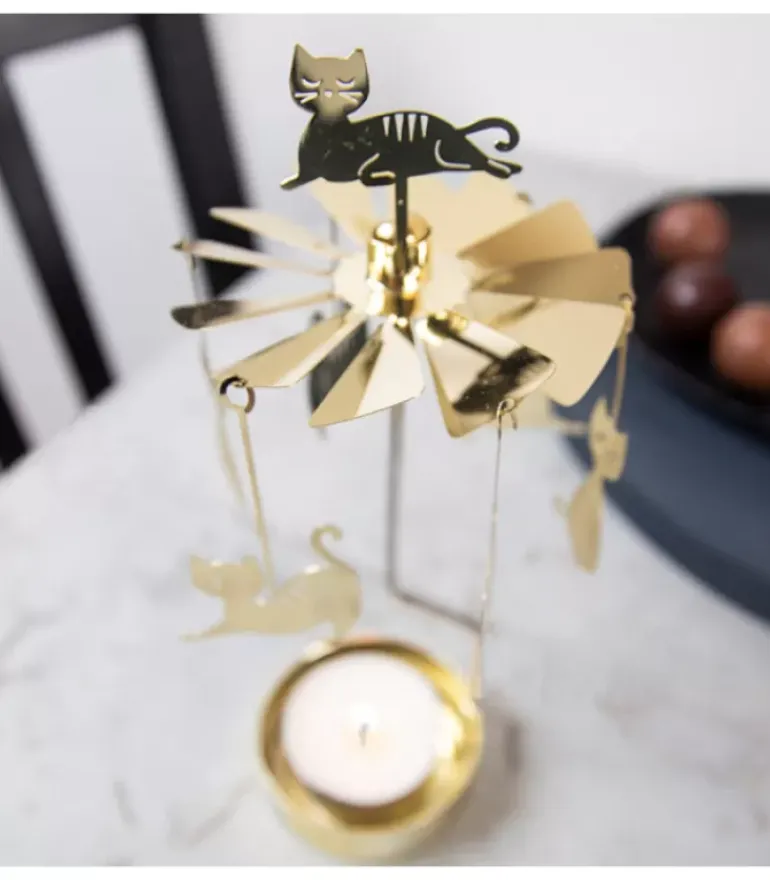 Bougeoir Carrousel Famille De Chats En Metal Dore.