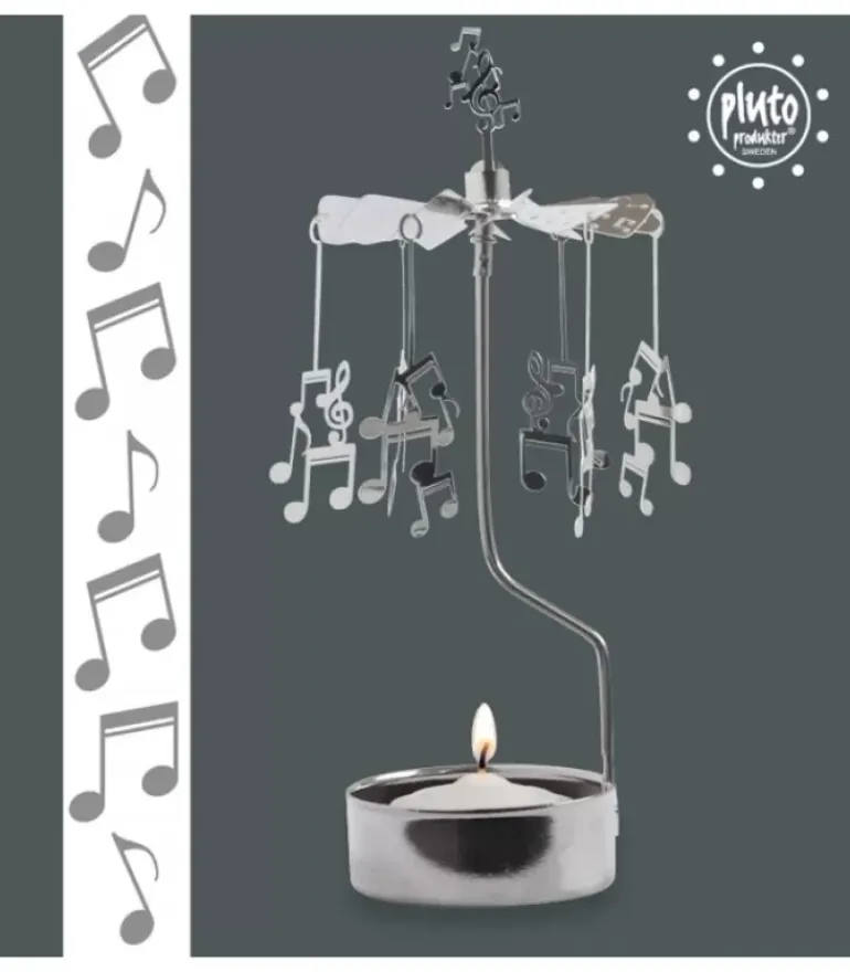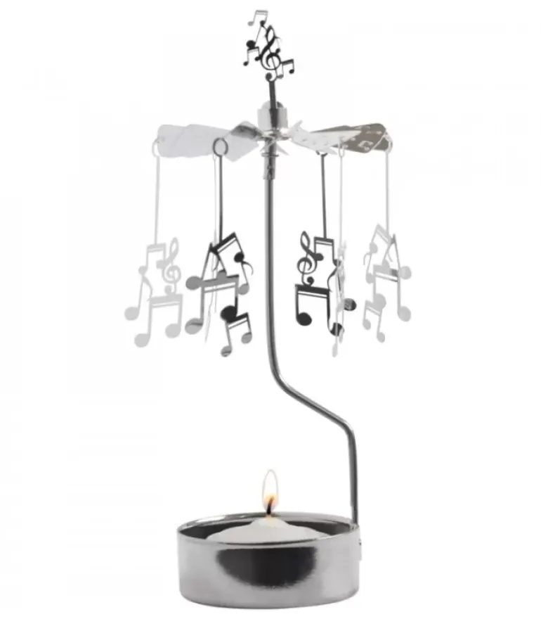Bougeoir Carrousel Avec Six Notes De Musique En Metal Argente.