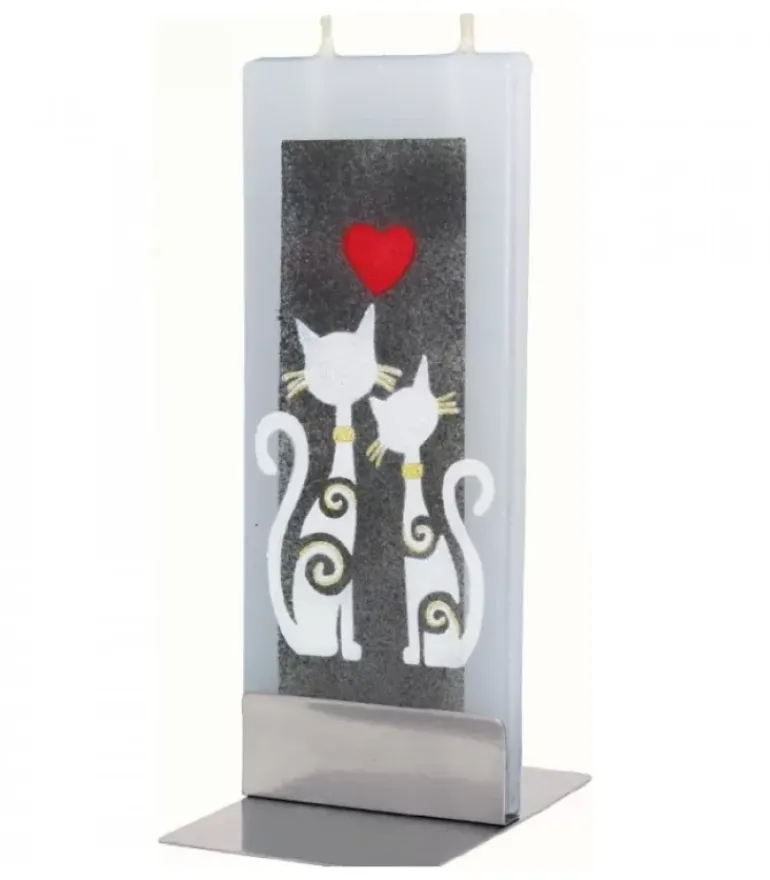 Bougie De Noël Décorative Double Meche, Motif Chats Et Coeur.