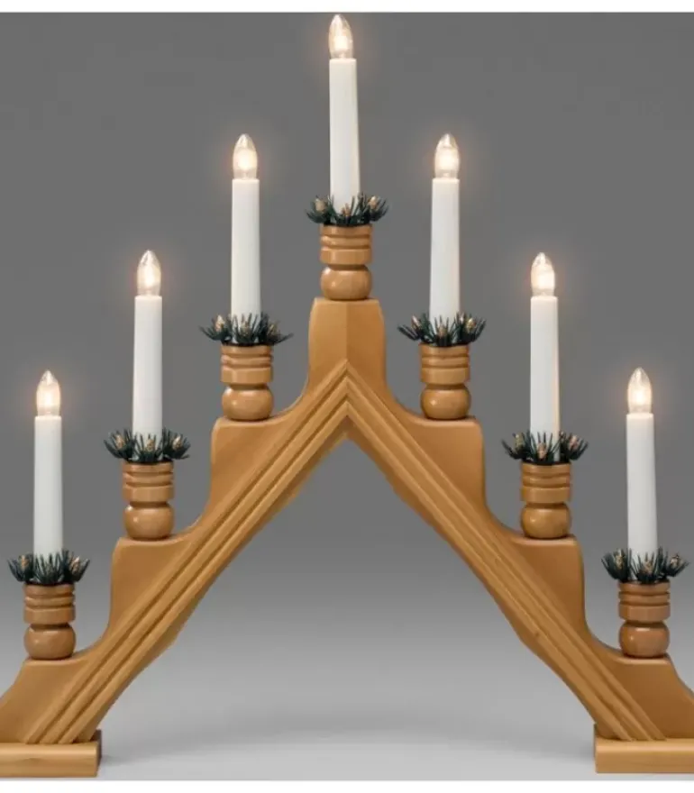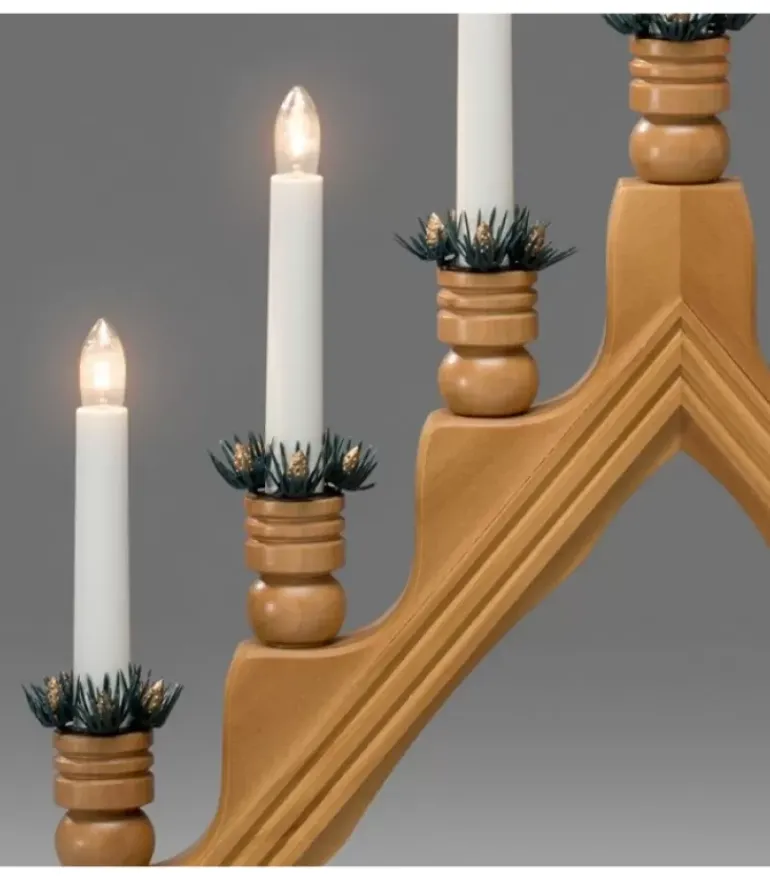 Chandelier Pyramide A Bougie Electrique Avec Décorations, Couleur Chene.