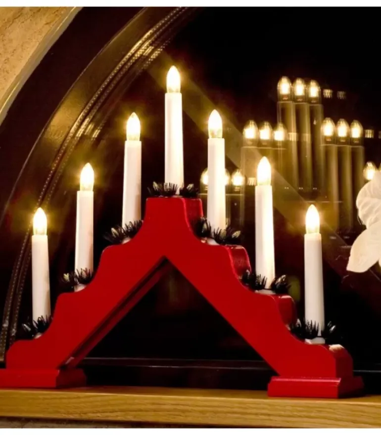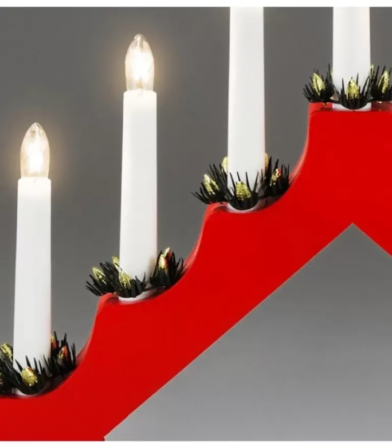 Chandelier De Noël Pyramide En Bois A Bougie Electrique, Couleur Rouge.