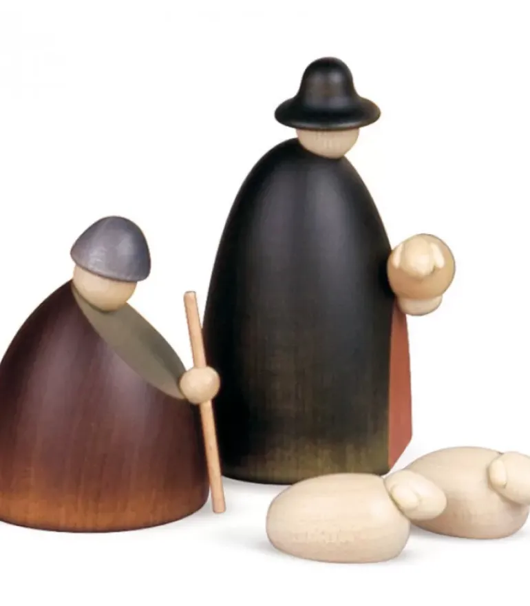 Personnages Crèche De Noël En Bois Peint.