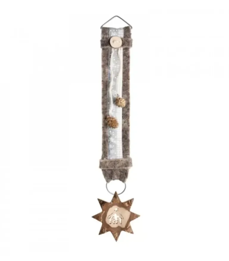 Grande Décoration Murale De Style Alpin Avec Ruban En Laine Et Etoile En Bois