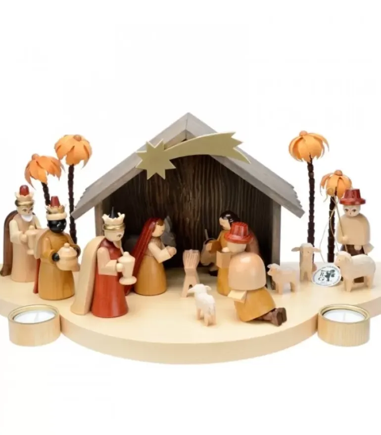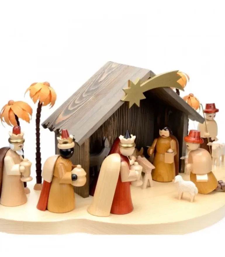 Petite Crèche Moderne En Bois Avec Un Palmier Et La Nativite