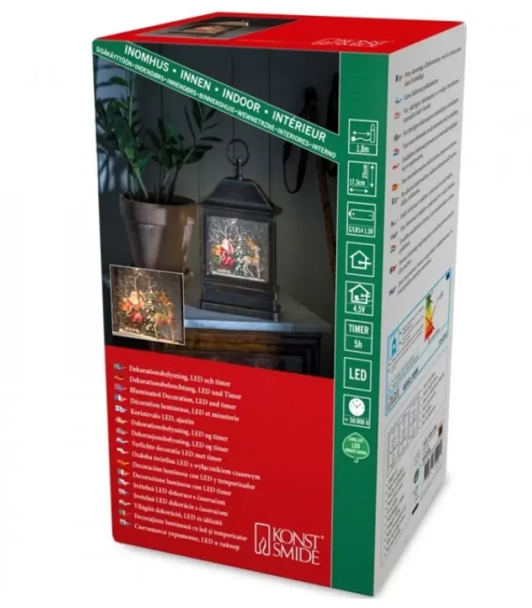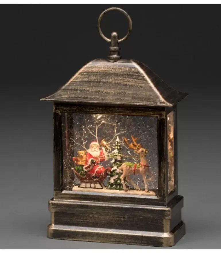 Lanterne De Noël À Neige Led En Forme De Lampe Tempete Avec Père Noël Dans Un Traineau, Remplie D’Eau.