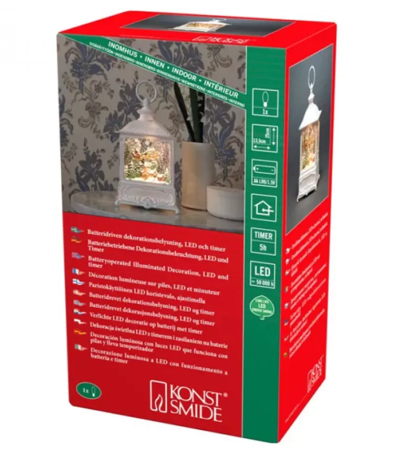 Une Petite Pompe A L’Interieur Brasse L’Eau Et Fait Tournoyer Les Paillettes De Neige. Un Eclairage Led Eclaire La Scene D’Une Douce Lumiere.