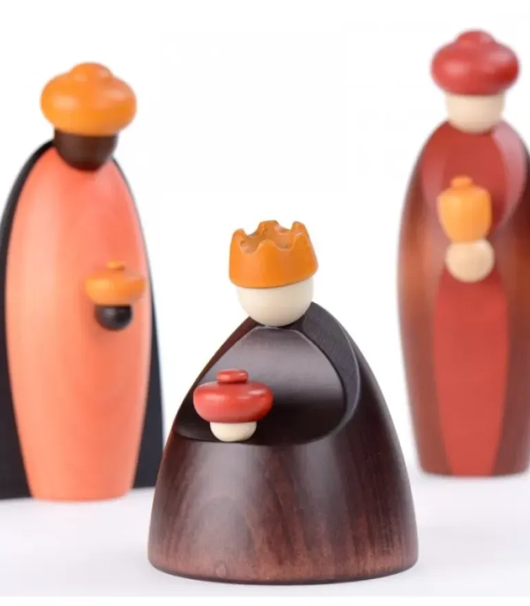 Mini Crèche De Noël Avec Personnages En Bois D’Olivier, 5 Cm