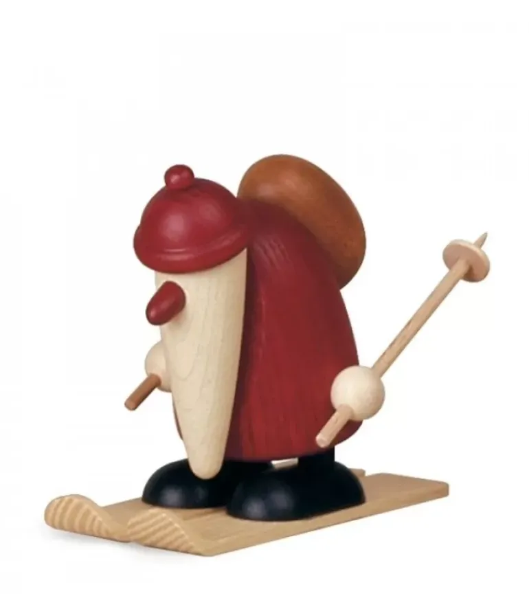 Figurine Père Noël En Bois Peint Sur Des Skis