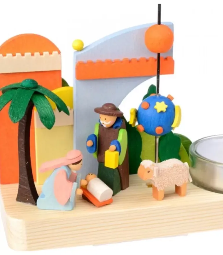 Petit Carrousel En Bois Crèche De Noël Avec Enfant Jesus, Marie Et Joseph.