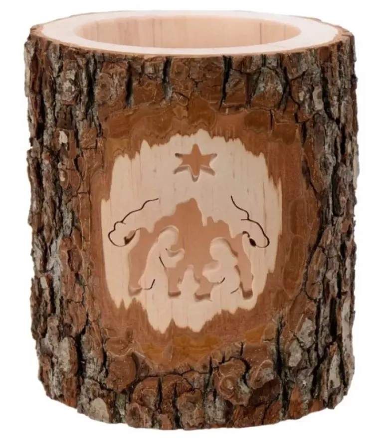 Photophore En Bois Avec Motif Crèche De Noël Et Etoile Realises En Bois Cisele.