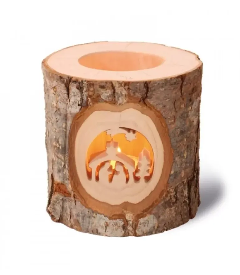 Photophore En Bois Avec Motif Crèche De Noël Et Etoile Filante Realise En Bois Cisele.