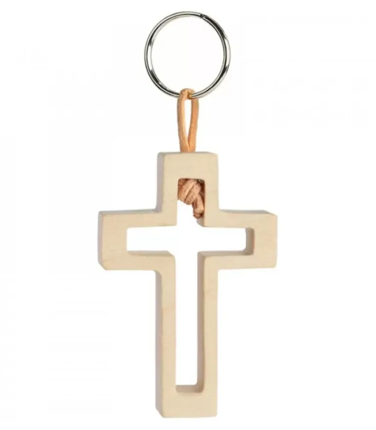 Porte-Clef Croix En Bois Avec Croix Découpee, 5,5 Cm