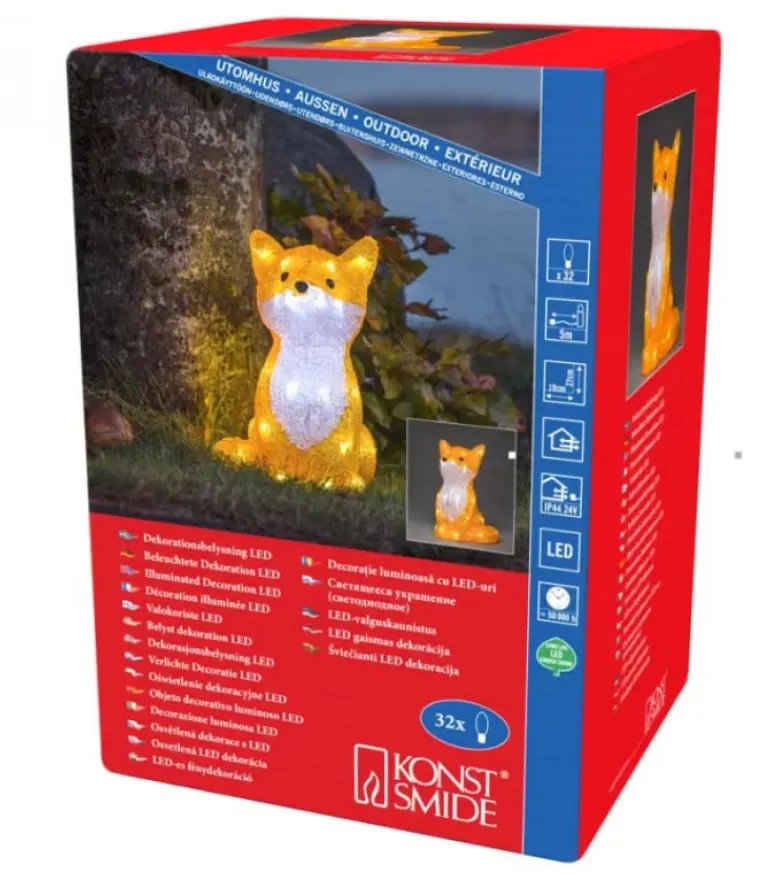 Renard A Led En Acrylique, 32 Diodes Blanc Froid.