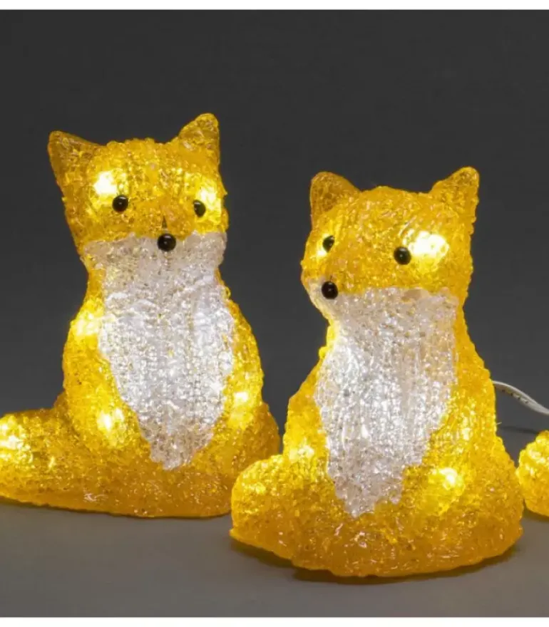Renards Lumineux Acryliques Led Assis, Lot De 5, 40 Diodes Blanches Froides.