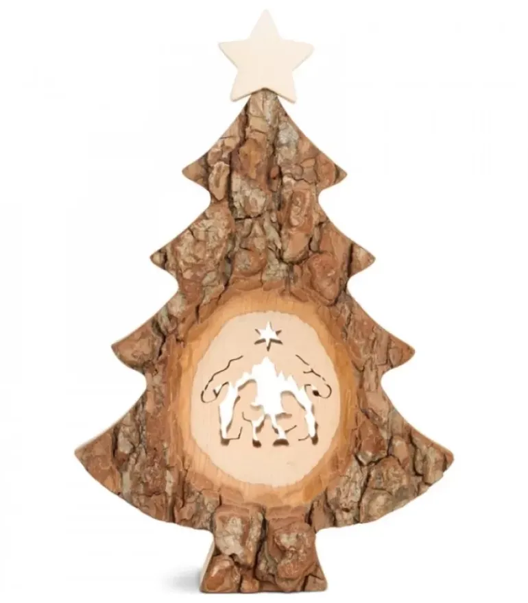 Crèche De Noël En Ecorce 12,5 Cm, Avec Nativite En Bois D’Erable
